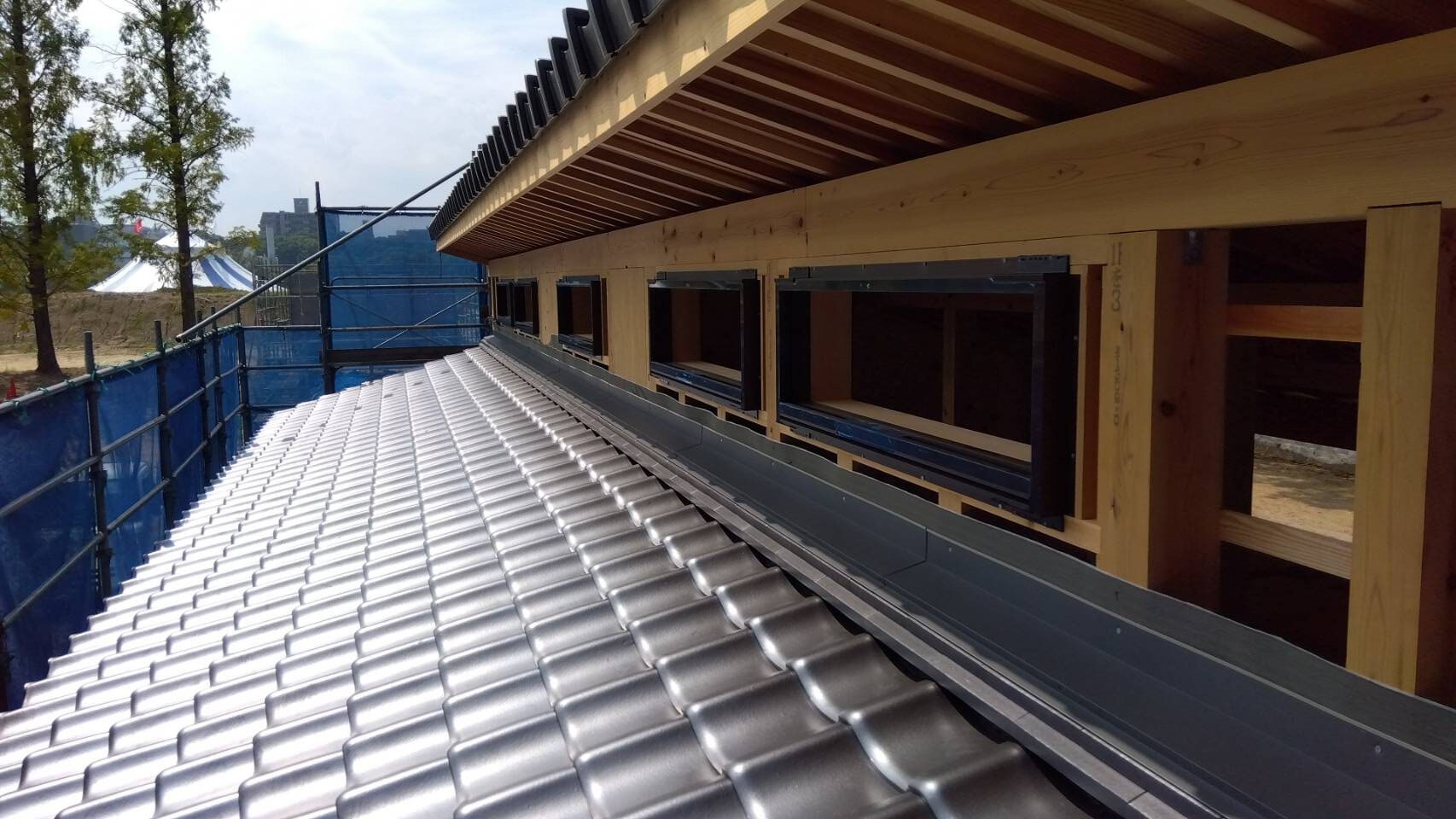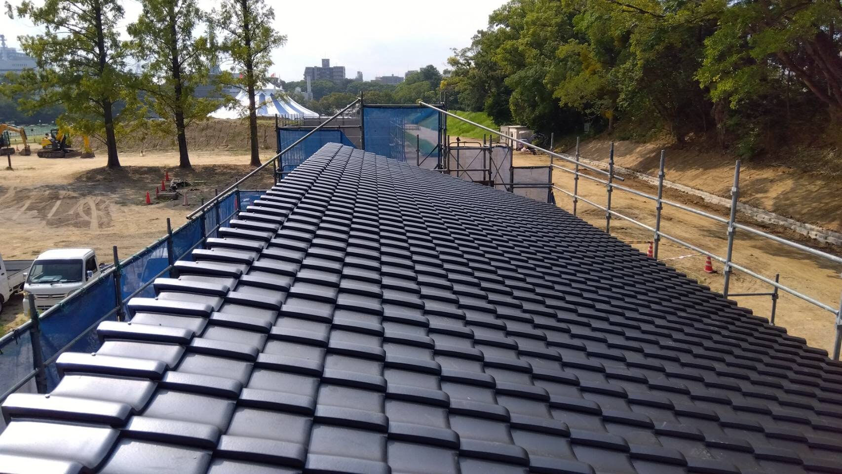 愛媛県松山市 城山公園(堀之内) 共同トイレ新築屋根工事 新築屋根、外壁、樋、防水工事 木造 屋根 約100㎡ 石州瓦 TSルーフ 色:銀黒 ※片流れ棟は受注生産品 ・ルーフィング張り、広小舞(防腐処理)取付 ・瓦桟(防腐処理)打ち、荷揚げ ・葺上、のし瓦2段、雨押板金 ・完工 TAG 次の記事 前の記事 実績一覧へ戻る