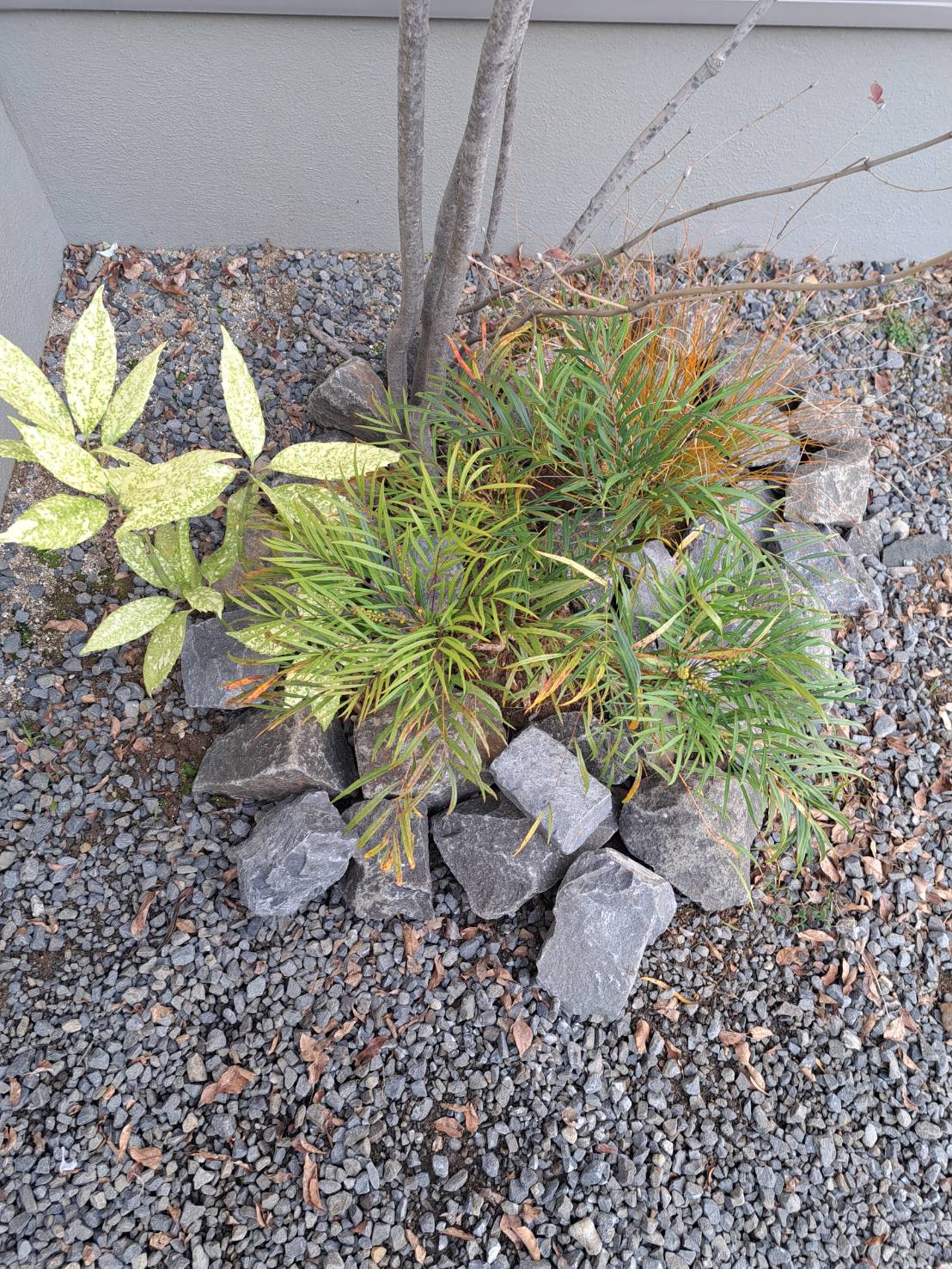 アオキ(斑入り)、マホニアコンフューサ、カレックス(カンスゲ)