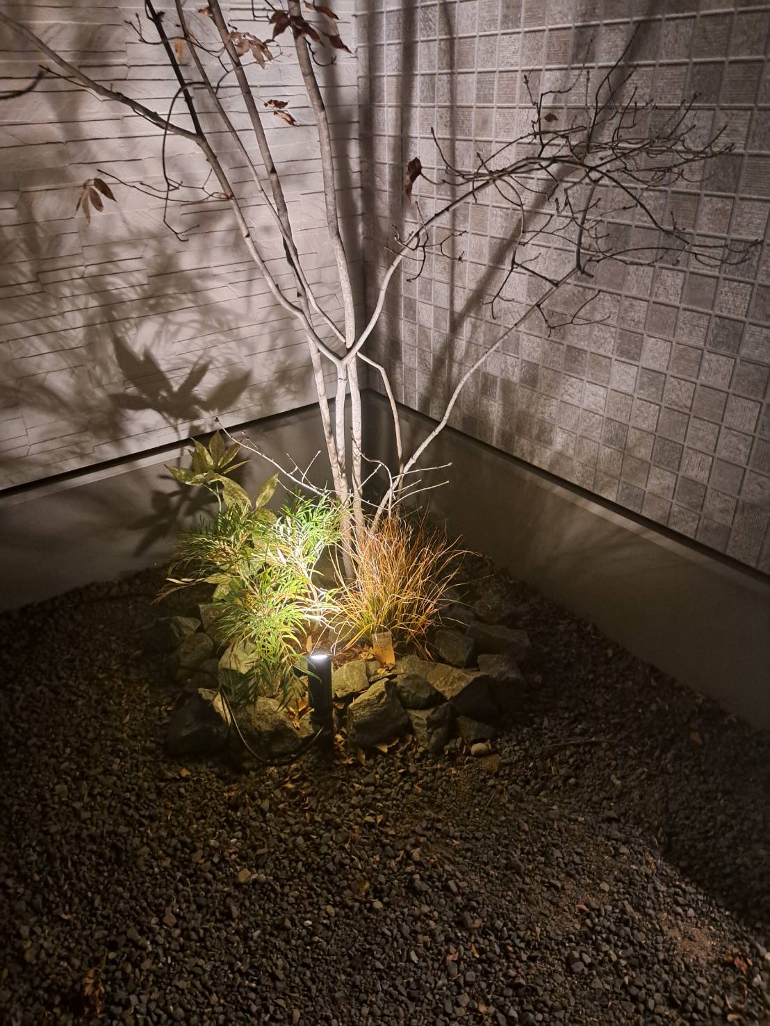庭の魅力を静かに引き出し、昼とはまったく違う表情を生み出します。
