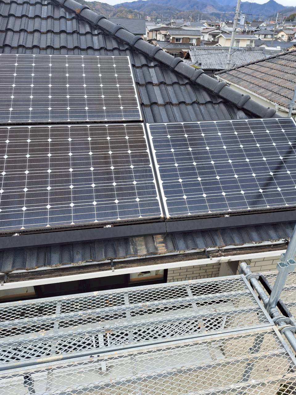 愛媛県松山市 H様邸 屋根修繕 屋根修繕工事 雨漏れ修繕工事 ドローン点検、瓦のズレ確認 ①足場設置 ②太陽光パネル取り外し ③一時瓦撤去 ④防水処理、桟木施工 ⑤瓦復旧 ⑥太陽光パネル復旧 TAG 前の記事 実績一覧へ戻る
